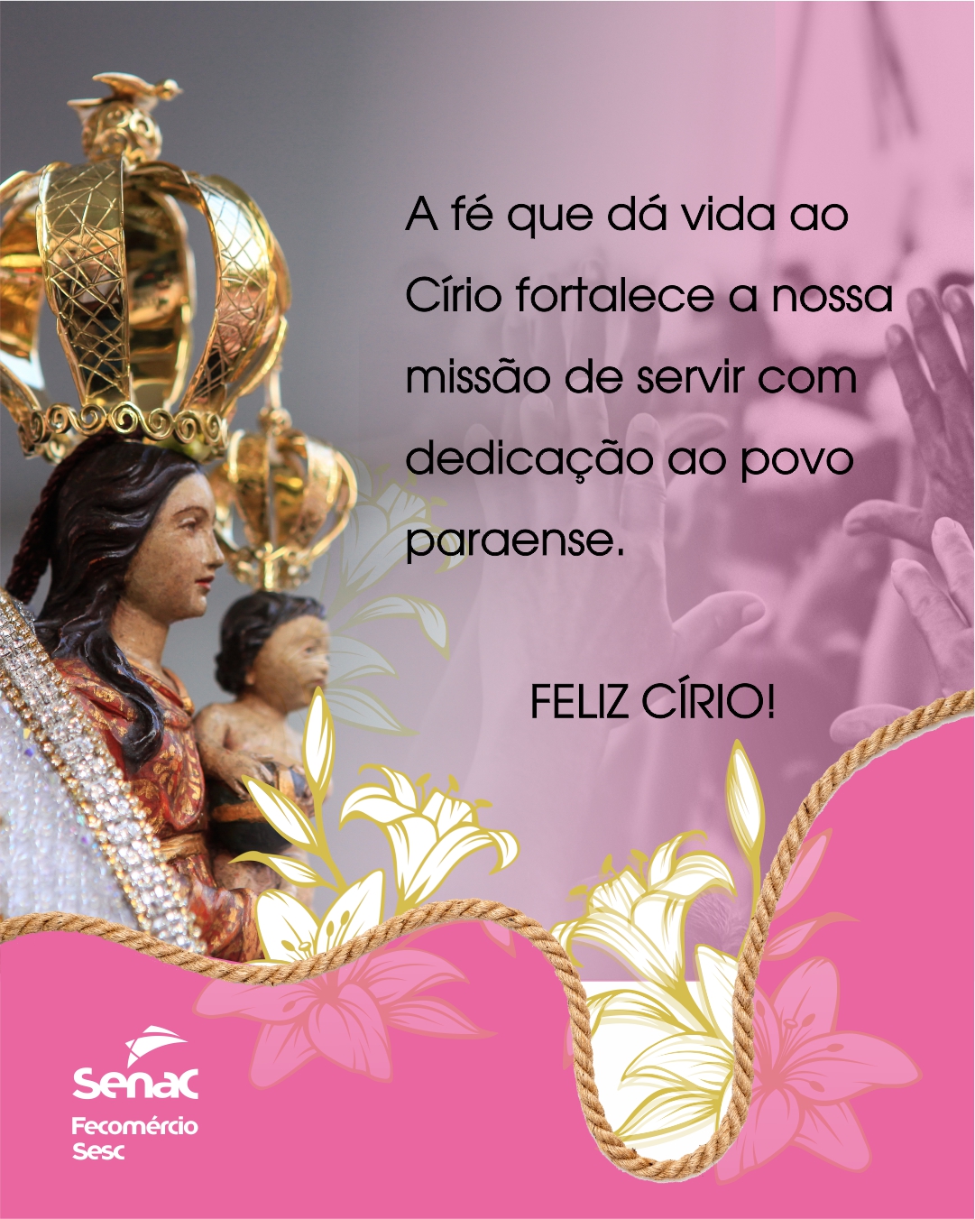 ✨ Assim também é o trabalho do Senac Pará, que encontra na devoção do povo paraense a inspiração para seguir servindo e transformando vidas por meio da educação profissional, com dedicação e amor.