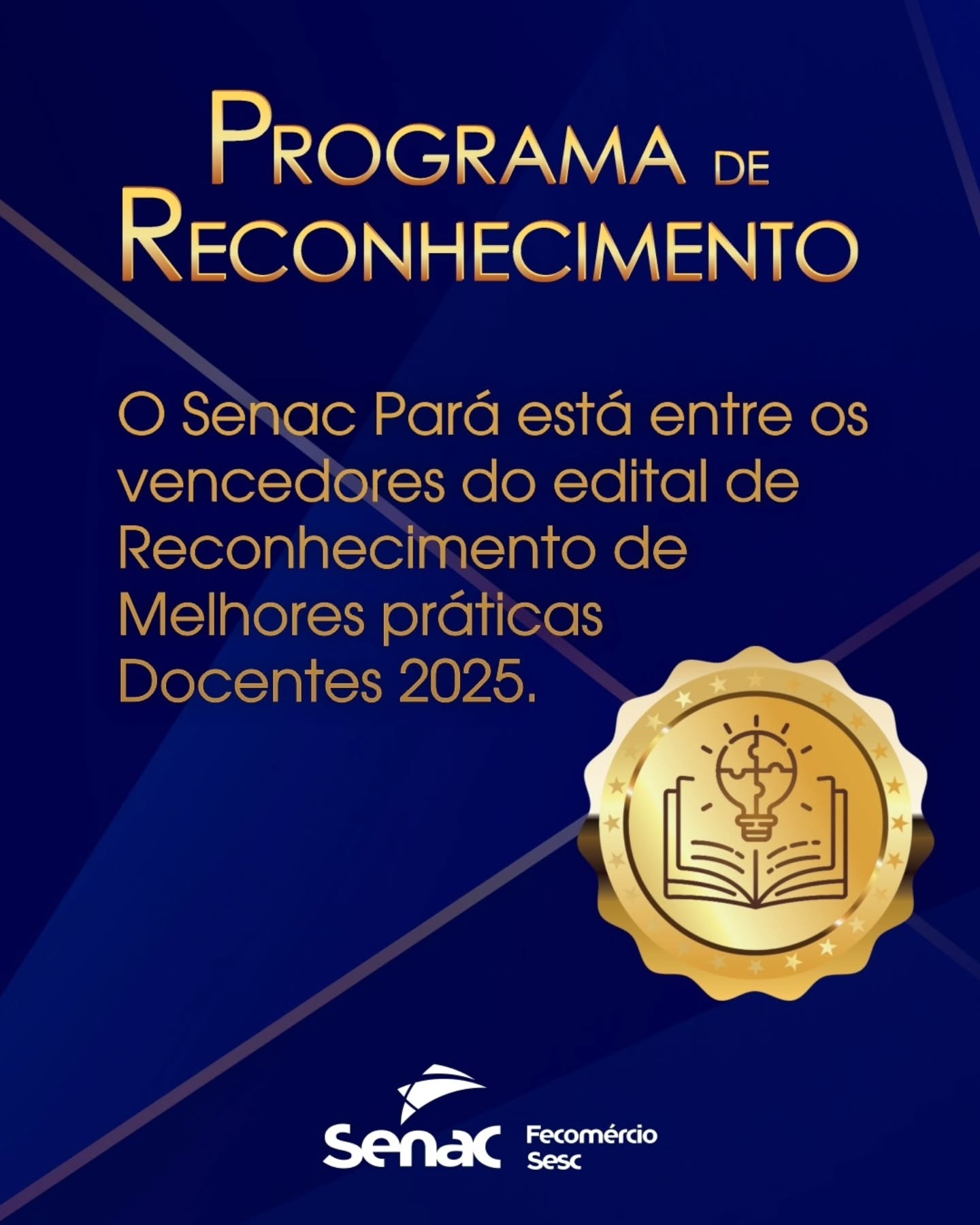🎉 Reconhecimento que transforma! O Senac Pará está entre os vencedores do Edital de Melhores Práticas Docentes 2025, na categoria Práticas Docentes com o Uso de Tecnologias Digitais, com projeto desenvolvido pelo instrutor Franco Sério. 💙 A conquista reforça o compromisso do Senac com a inovação, a criatividade e o desenvolvimento de práticas pedagógicas que inspiram e transformam vidas. #Senac #SenacPa #PráticasDocentesSenac #DiaDoEducador #EducaçãoQueTransforma