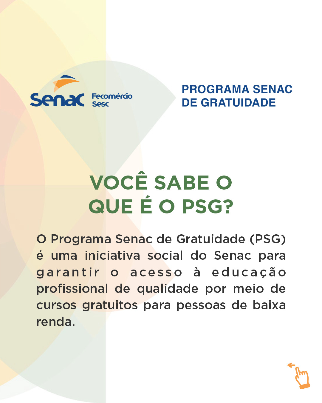 📍O Senac oferta cursos gratuitos para a formação profissional, por meio do Programa Senac de Gratuidade (PSG). 📚O ingresso nos cursos do PSG se dá por ordem de inscrição e o maior objetivo do programa é atingir pessoas cuja renda familiar mensal per capita não ultrapasse dois salários mínimos. ✅Acompanhe frequentemente o Portal PSG para verificar a disponibilidade dos editais ao longo do ano. E não esqueça: - Leia atentamente todo o edital para poder…